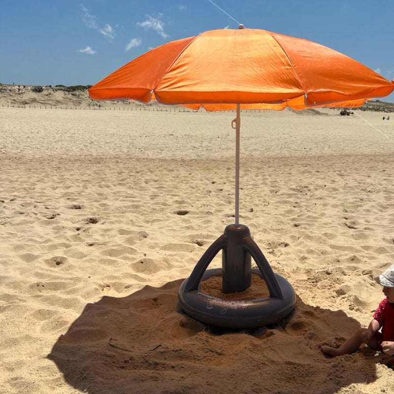 Airboom Grey mit Pumpe – Der aufblasbare Sonnenschirmständer mit Getränkekühler für den Strand